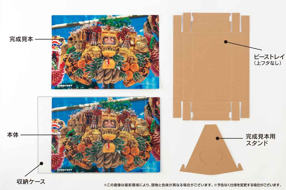日本の伝統的な縁起物をふんだんに盛り込んだ、まさに「福を呼ぶ一枚」です!中央には、睨みをきかせて厄を払い、目標達成をサポートする「開運招福だるま」が鎮座。その周りを彩るのは、金運財運を招き寄せる眩いばかりの「黄金の熊手」。たくさんの千両箱や大判小判、打ち出の小槌が描かれ、見ているだけで心が浮き立ちます。●付属品:完成見本・完成見本用スタンド・収納ケース・ピーストレイ●商品形態:台紙付パズル(完成された形での納品となります)