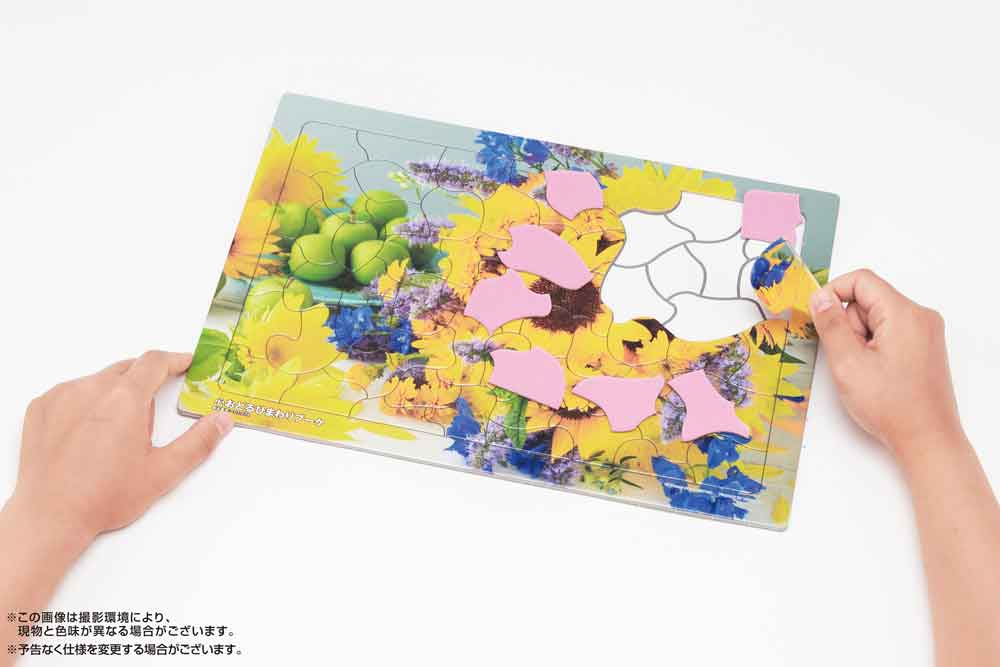 高齢者の方々のこころとからだの健康の為に介護の現場から生まれたジグソーパズルです。ジグソーパズルは脳と手先を使うことから、右脳活性化に効果があるといわれています。こうした特性を介護の現場でもっとお役立ていただけるよう、高齢者の方専用に開発しました。※糊、ヘラは付属しません