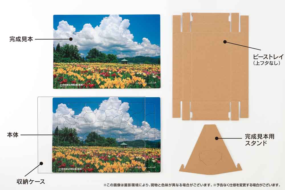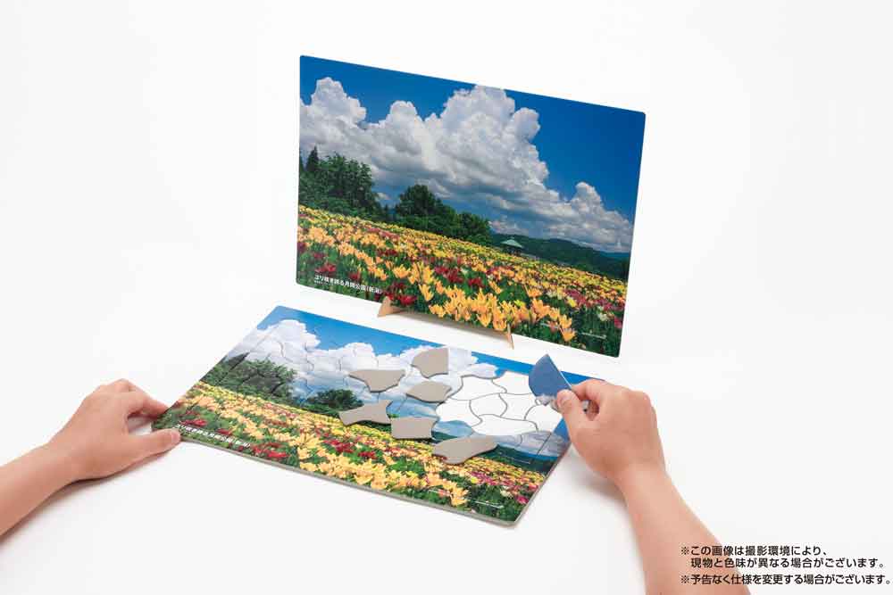 新潟県魚沼市にある月岡公園は、県内最大のユリの産地として知られる約1万本のユリが咲き誇る「花ひろば」が有名です。●高齢者の方々のこころとからだの健康の為に介護の現場から生まれたジグソーパズルです。ジグソーパズルは脳と手先を使うことから、右脳活性化に効果があるといわれています。●付属品:完成見本・完成見本用スタンド・収納ケース・ピーストレイ。●商品形態:台紙付パズル(完成された形での納品となります)