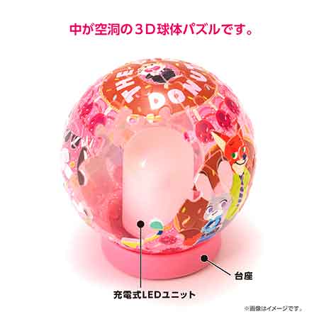 ジュディとニックの世界を組み立てながら、ピンク色の光で多様性あふれる世界を表現するルミオーブ。希望と友情のメッセージを、光とともに心で受け取れる特別なアイテムです。■ルミオーブとは■あなた自身の手で組み立てる「発光する球体」という新感覚のインテリアジグソーパズルです。幻想的に光り輝き、お部屋に心地よい雰囲気を演出します。※USB充電式でコードレスだからどこでも飾れます。■内容物:ジグソーパズルピース×61ピース、台座×1個、USBtypeCケーブル×1本、充電式LEDユニット