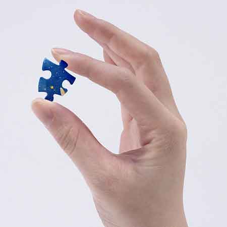組み終わると中が空洞でボールのようになるパズル。1つ1つのピースが湾曲していて、はめていくと自然と球の形に組みあがります。