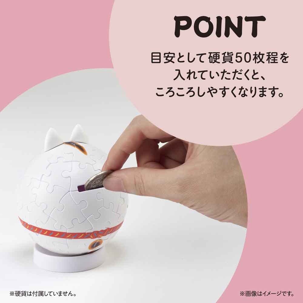 パズころりん「招き猫」は、お金を入れると起き上がりこぼしのようにころころゆれる3Dパズルです。白い招き猫は、運気を上げ幸福に導き、右手を上げているデザインは金運を招くと言われています。