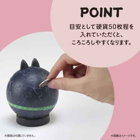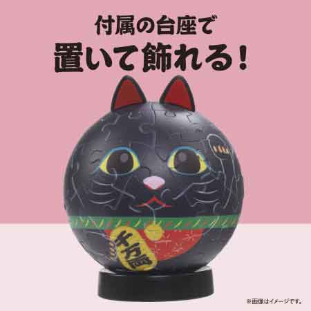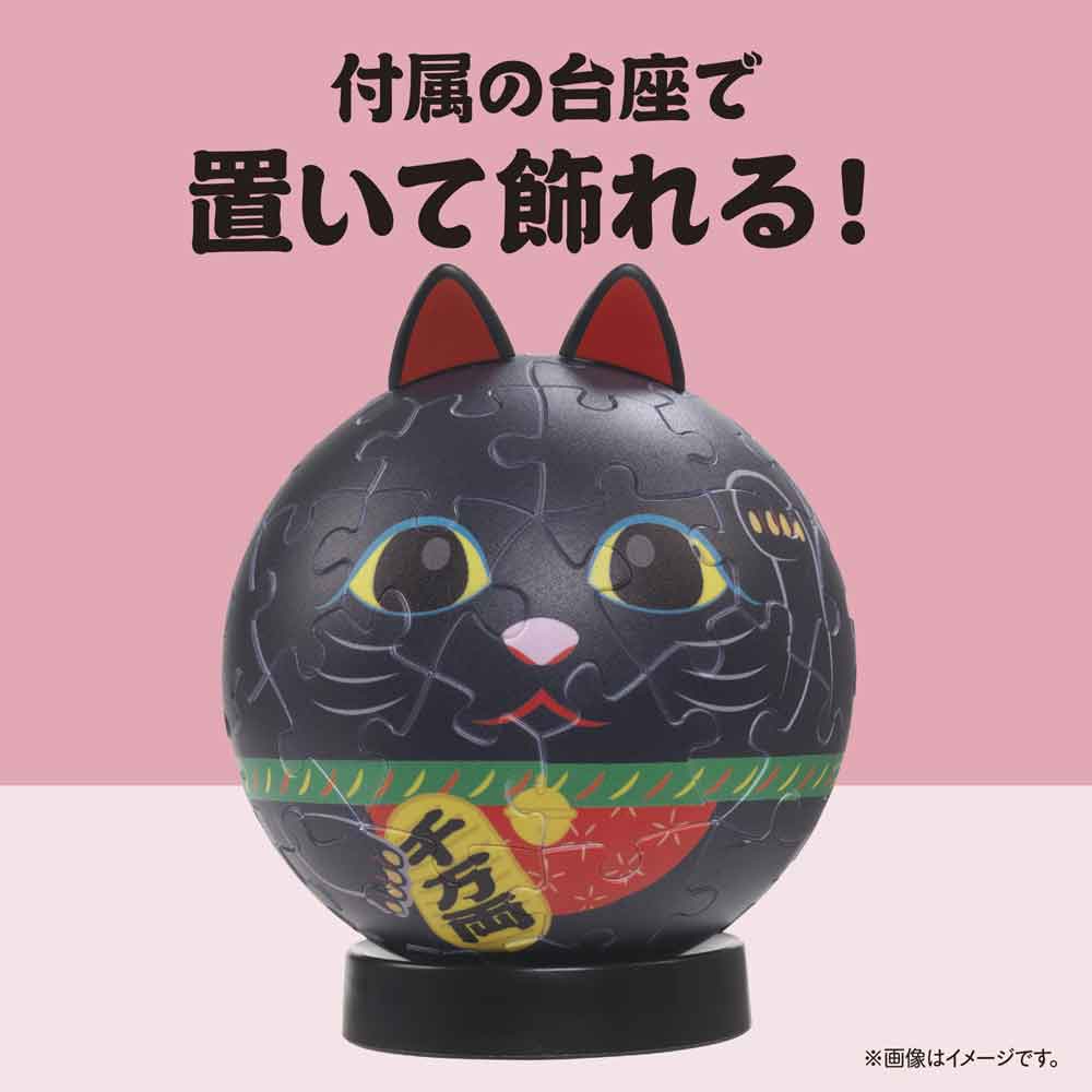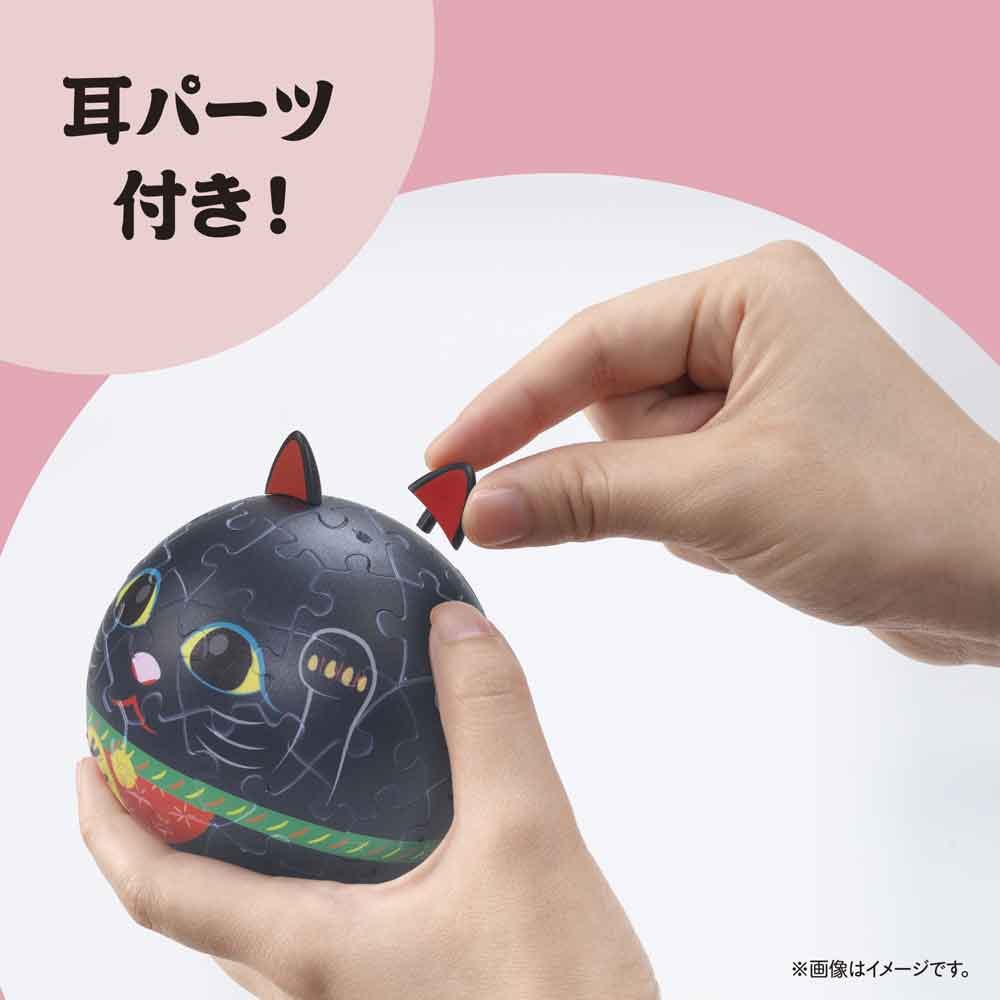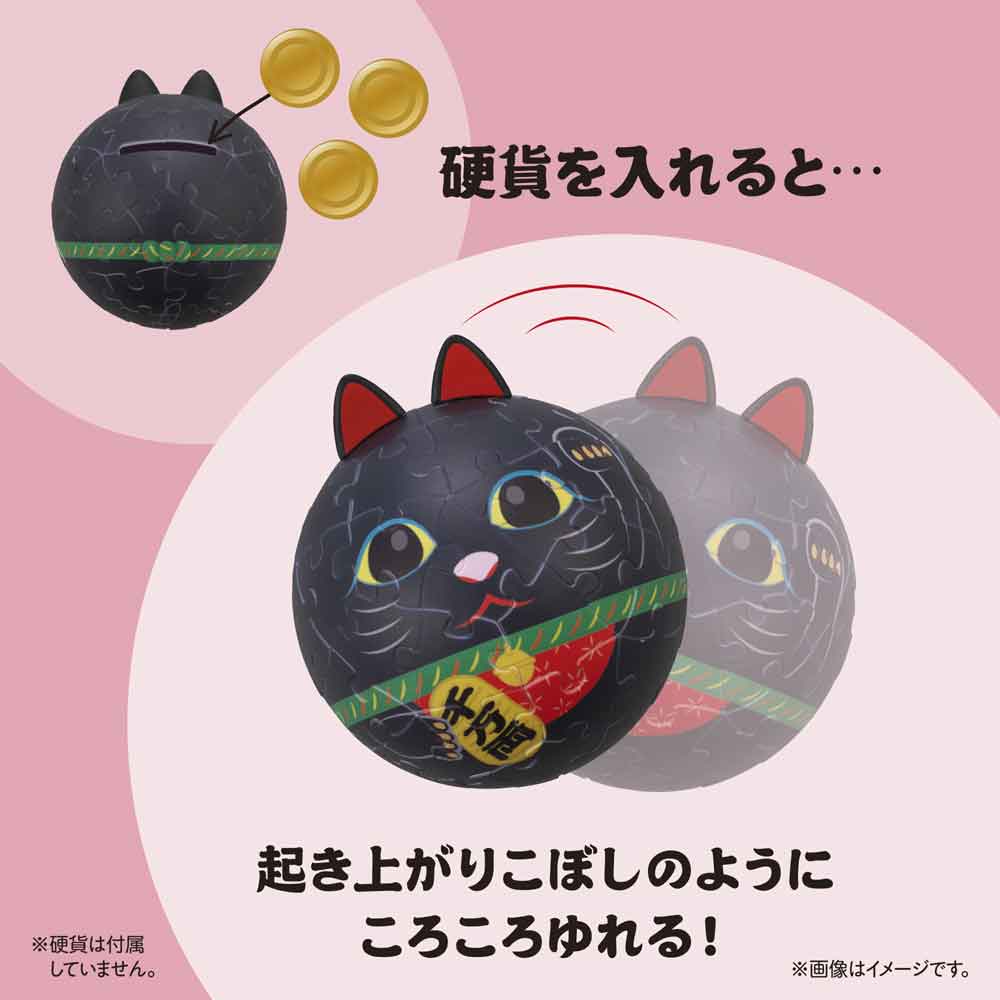 パズころりん「招き猫」は、お金を入れると起き上がりこぼしのようにころころゆれる3Dパズルです。黒い招き猫は、魔除けや厄除けに効果があり、左手を上げているデザインは人やお客を招くと言われています。