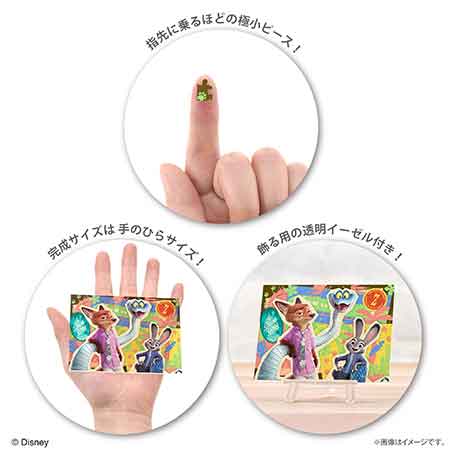 手のひらに乗るくらいの小さなイーゼルに可愛らしく飾ることが出来るミニチュアサイズのジグソーパズルです。