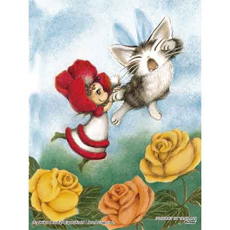 フォーンの森で、小さな妖精に姿を変えられてしまったダヤン。花園でのアネモネ王女との夜通しのダンスパーティで、眠そうな表情のダヤンが珍しくて可愛い一枚です!