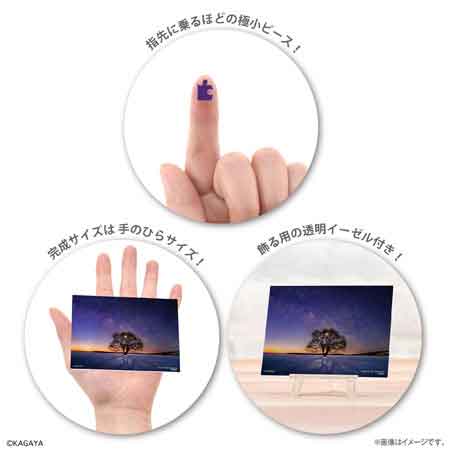 手のひらに乗るくらいの小さなイーゼルに可愛らしく飾ることが出来るミニチュアサイズのジグソーパズルです。