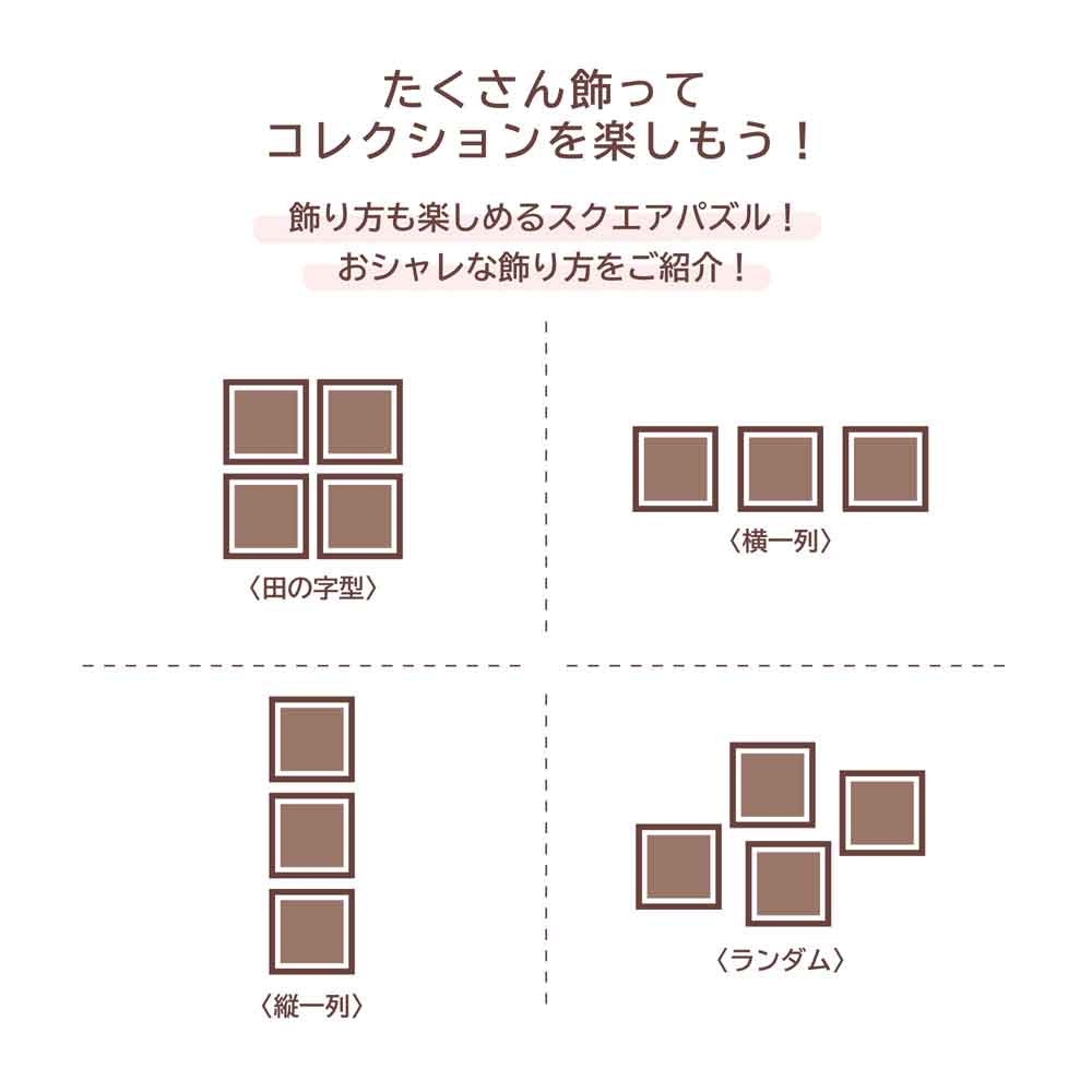 リトルミイの様々な表情やポーズが「あれこれ」とたくさん描かれている楽しいアートです。飛んだり、かみついたり、いないいないばあをしているリトルミイの魅力が満載で、ニョロニョロや、リトルミイに関わりの深いキャラクターもいます。スクエアパズルの中に散りばめられたアートを隅々までお楽しみください。