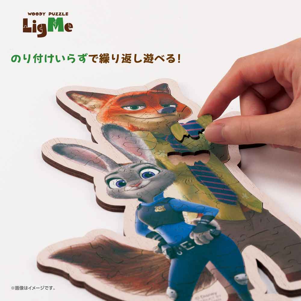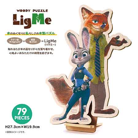 人気作品「ズートピア」より名コンビのジュディとニックが登場。ピースにはズートピアの住人たちが盛りだくさん。「WOODY PUZZLE Lig Me」とは、レーザーで精密にカットされた木製ジグソーパズル。木のぬくもり感じる質感のピースには、作品を象徴するキャラクターやアイコンピースが含まれています。ファンならではの発見や「あなただけの」遊び心で、パズルを組み立てながら作品世界をより深く味わえます。付属の木製イーゼルで「私らしく」いられる場所にインテリアとして飾ることができます。