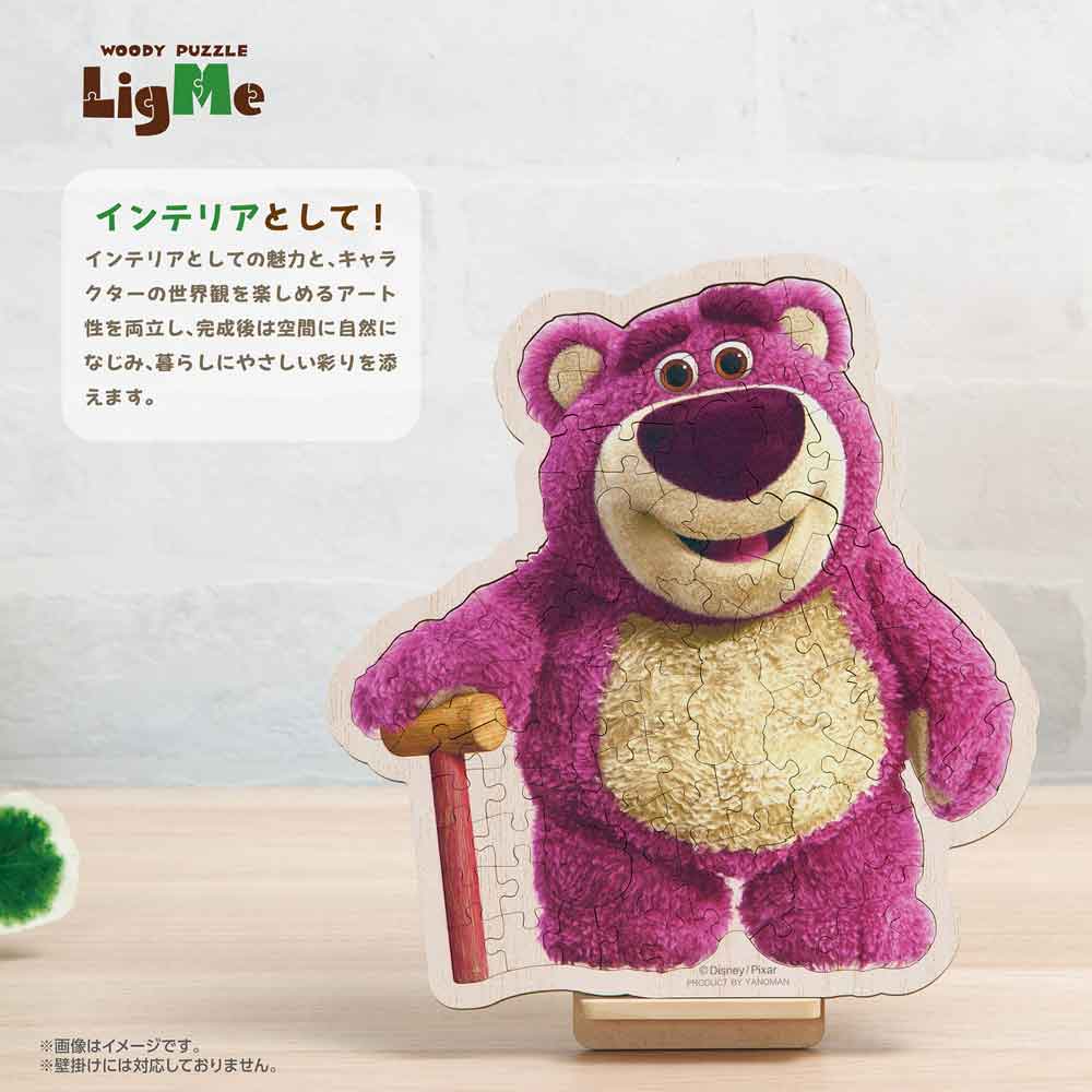 「トイ・ストーリー3」に登場したロッツォ。その姿のアイコンピースやいちごのピースが世界観を演出します。「WOODY PUZZLE Lig Me」とは、レーザーで精密にカットされた木製ジグソーパズル。木のぬくもり感じる質感のピースには、作品を象徴するキャラクターやアイコンピースが含まれています。ファンならではの発見や「あなただけの」遊び心で、パズルを組み立てながら作品世界をより深く味わえます。付属の木製イーゼルで「私らしく」いられる場所にインテリアとして飾ることができます。