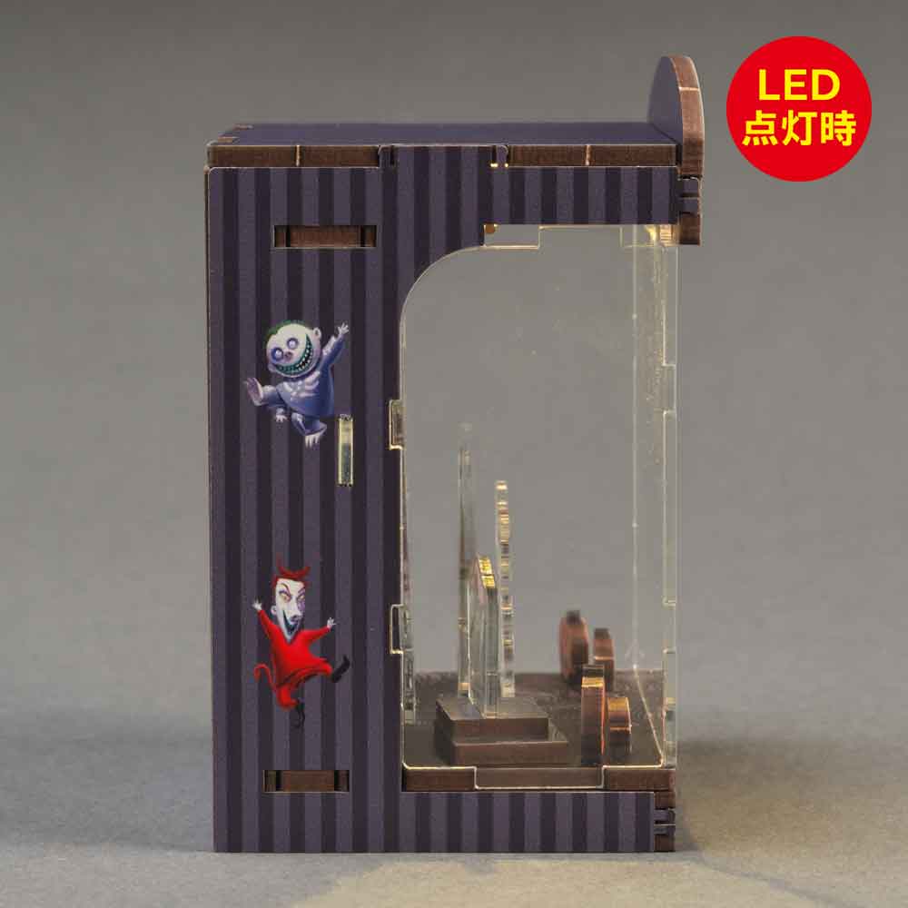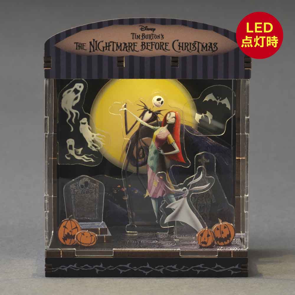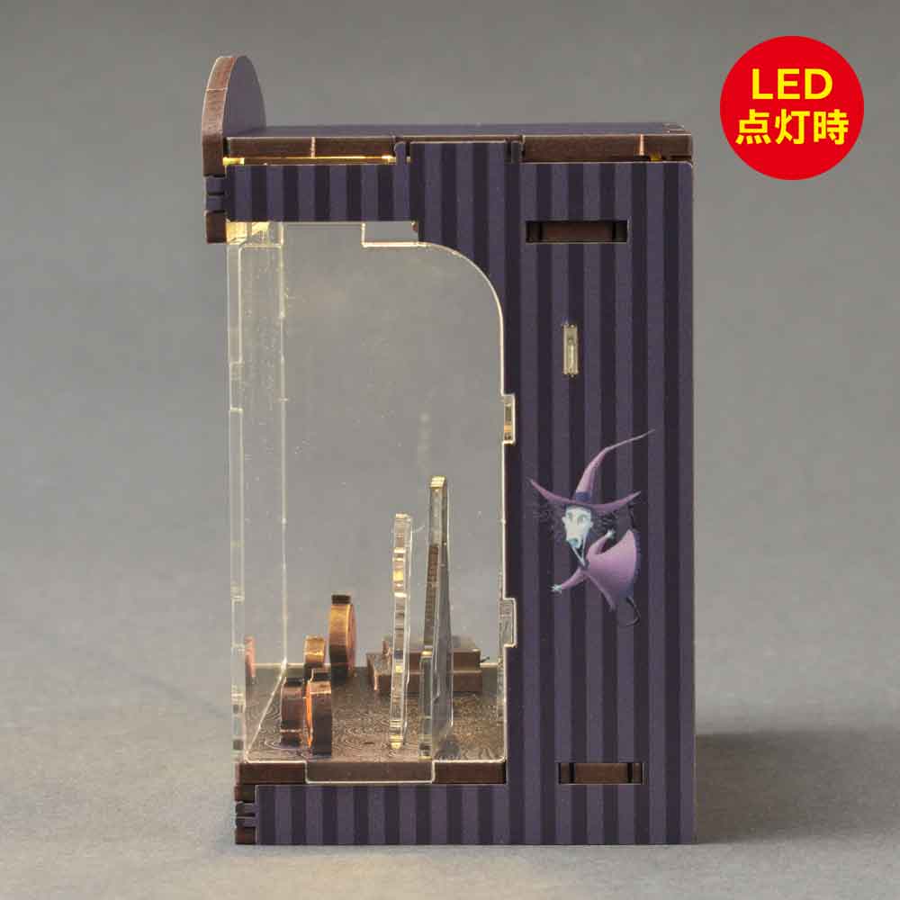 ハロウィン・タウンの独特な世界観を舞台に、ジャックの物語を立体的に表現。LEDライトの光が、ダークで幻想的な雰囲気とティム・バートンの美学を演出します。HAKOBEYAとは、パーツを差し込むだけ、工具不要で約20分で完成するDIYジオラマキット。コンパクトで大人のインテリアや推し活にも最適です。