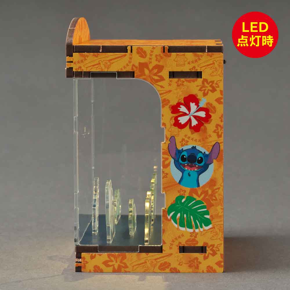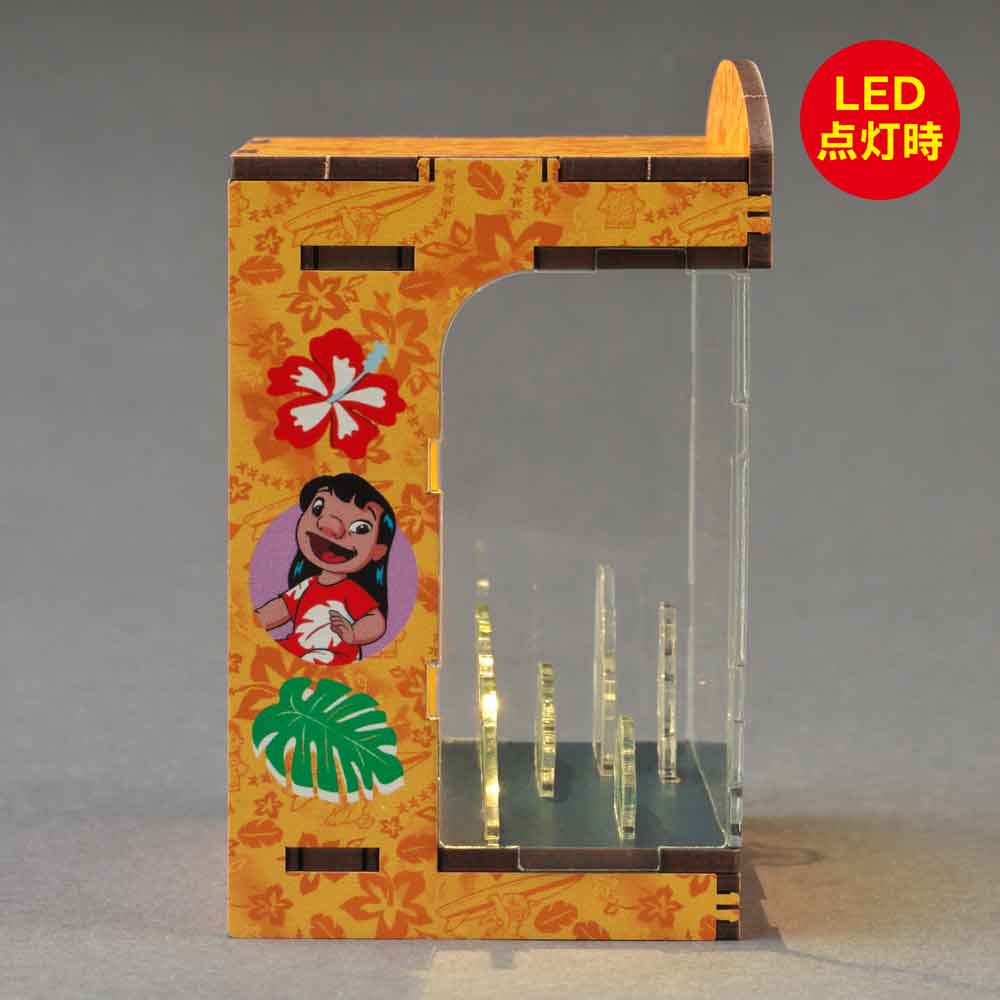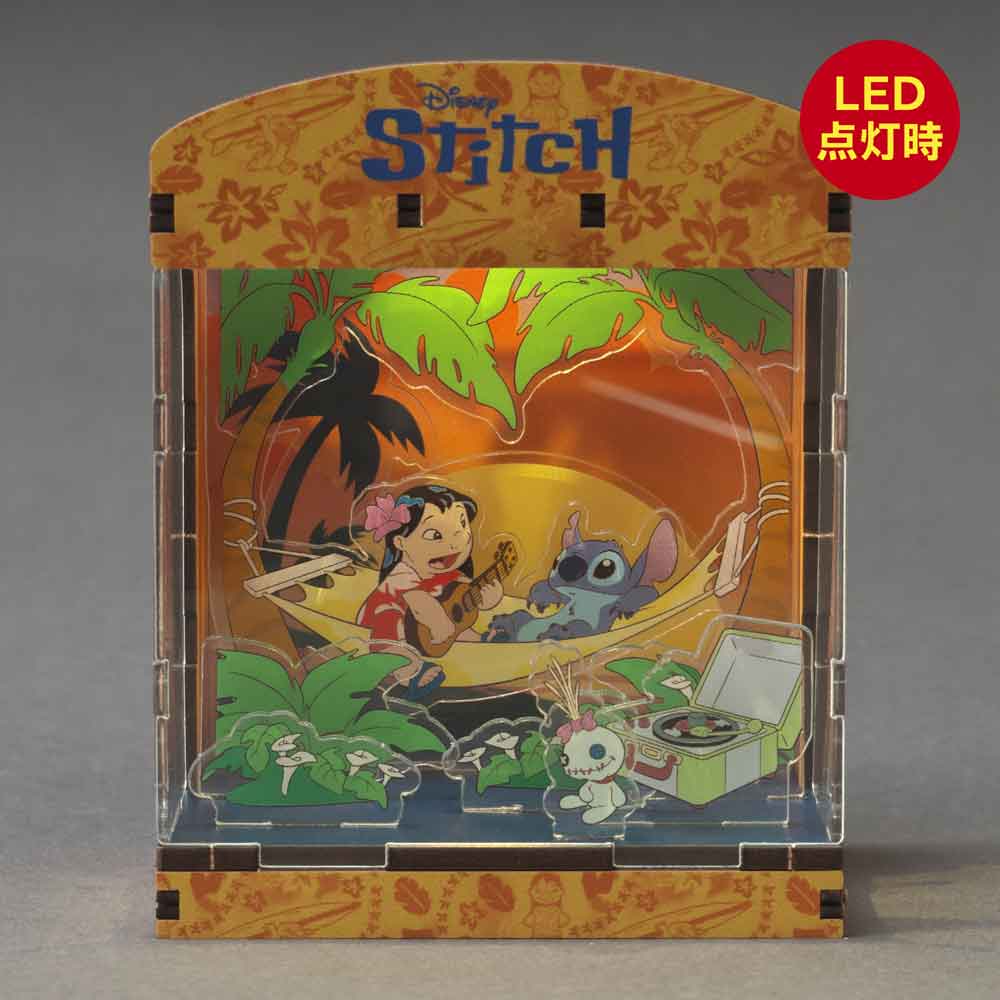 ハワイの美しい風景を舞台に、リロとスティッチの物語を表現。LEDの光が、南国の空気とオハナ(家族)の絆をやさしく包み込みます。HAKOBEYAとは、パーツを差し込むだけ、工具不要で約20分で完成するDIYジオラマキット。コンパクトで大人のインテリアや推し活にも最適です。