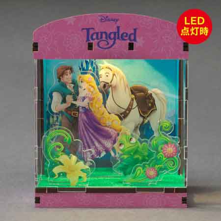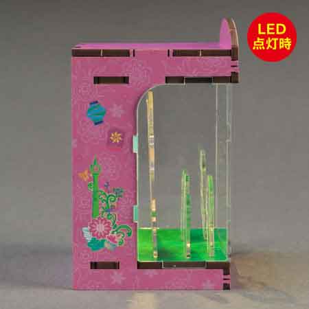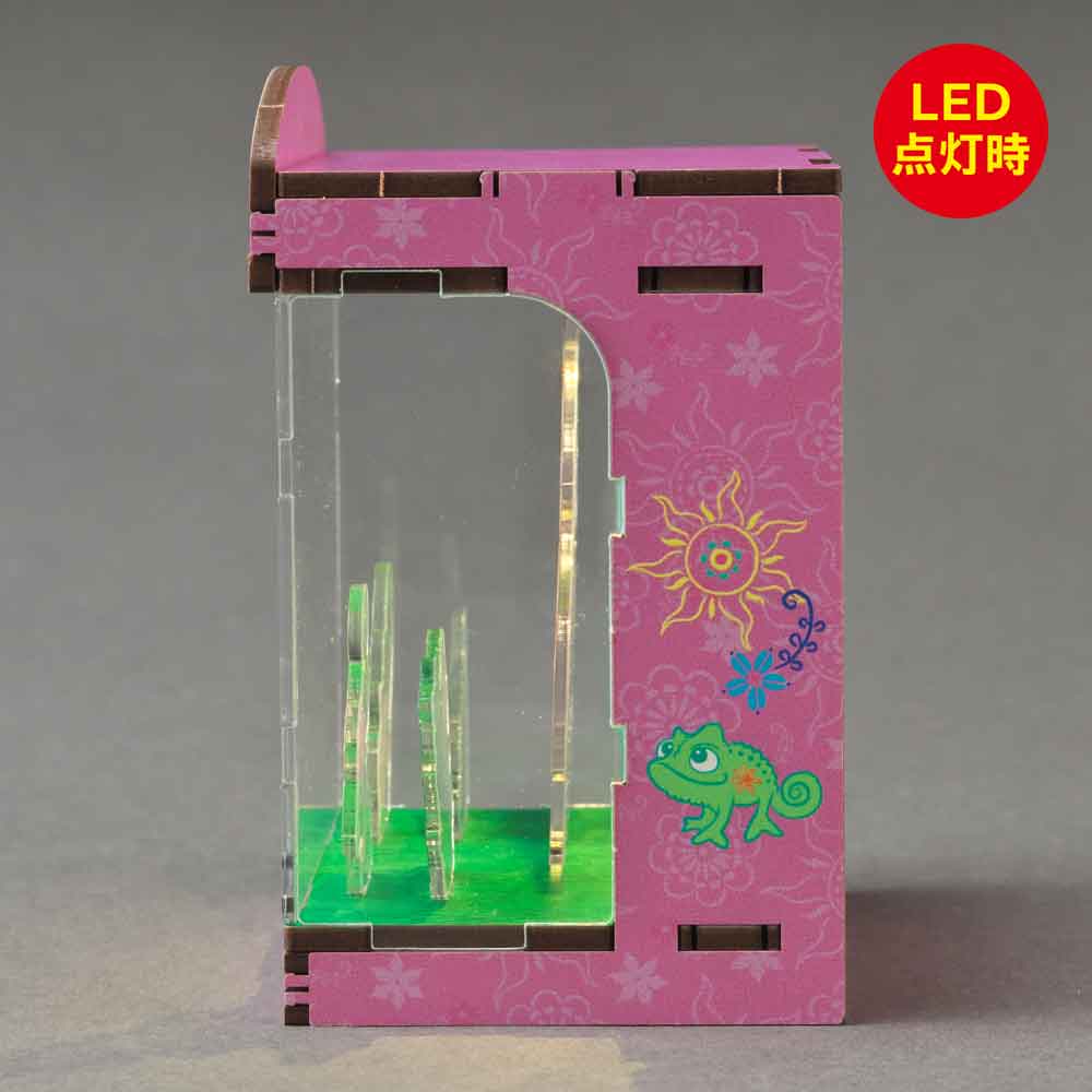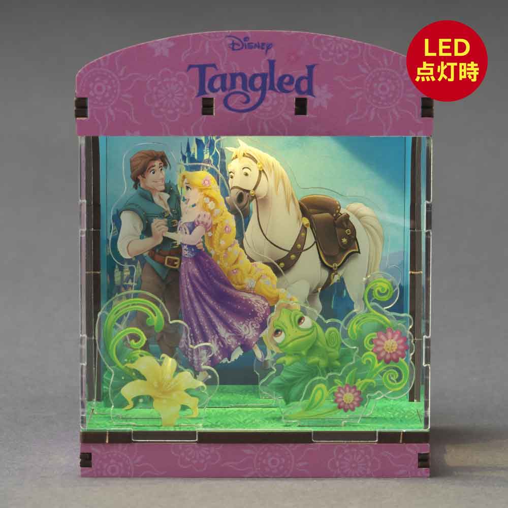 お城のある幻想的な世界を舞台に、ラプンツェルの物語を立体的に表現。LEDライトの光が、夢と希望の世界をロマンティックに映し出します。HAKOBEYAとは、パーツを差し込むだけ、工具不要で約20分で完成するDIYジオラマキット。コンパクトで大人のインテリアや推し活にも最適です。