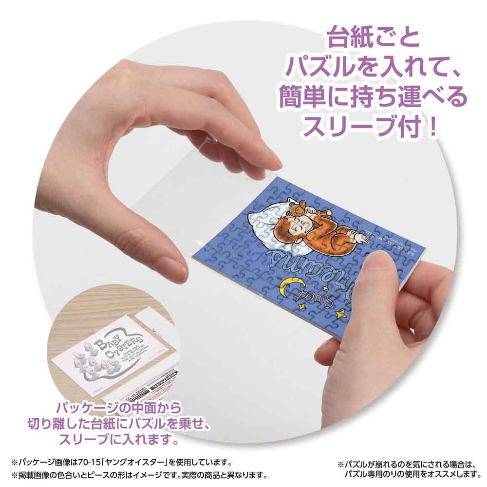 枕に寄りかかりぐっすり眠るジョージの穏やかな表情に癒される一枚です。●ジグソーパズルコパンとは・・・コパン(フランス語で「友達」)のように、一緒におでかけし、色々なところで遊べるジグソーパズルです。従来のジグソーパズルとは違い、お部屋に飾らず、専用ケース(別売)で持ち運びます。推しのキャラクターと一緒に街にでかけよう!
