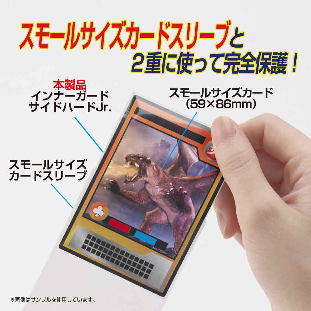 スモールサイズカード(59×86mm)にぴったりフィットする厚め、横入れのトレーディングカード用スリーブです。●横入れなのでカードの出し入れが楽々! ●カードが映える抜群の透明度 ●サイドが破れにくい確かな仕上げ ●カードにジャストフィットするサイズなので別売のスモールサイズカード用スリーブとあわせて使用可能。横入れ型で重ねる際も空気抜けがよく、入れやすくなっています。 ●パック入数:スリーブ80枚 ●スリーブサイズ:60×87mm ●日本製 ※予告なく仕様を変更する場合があります。